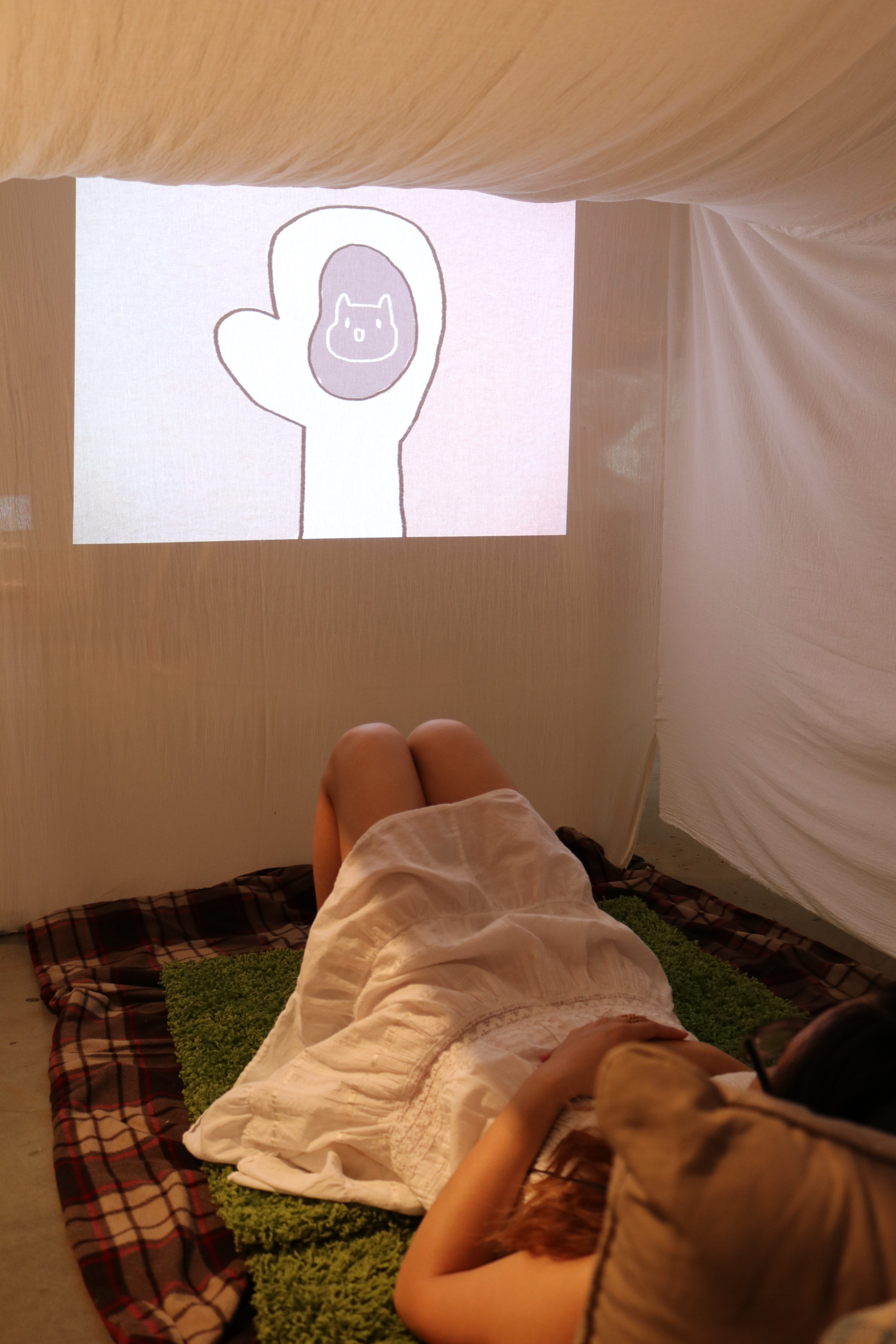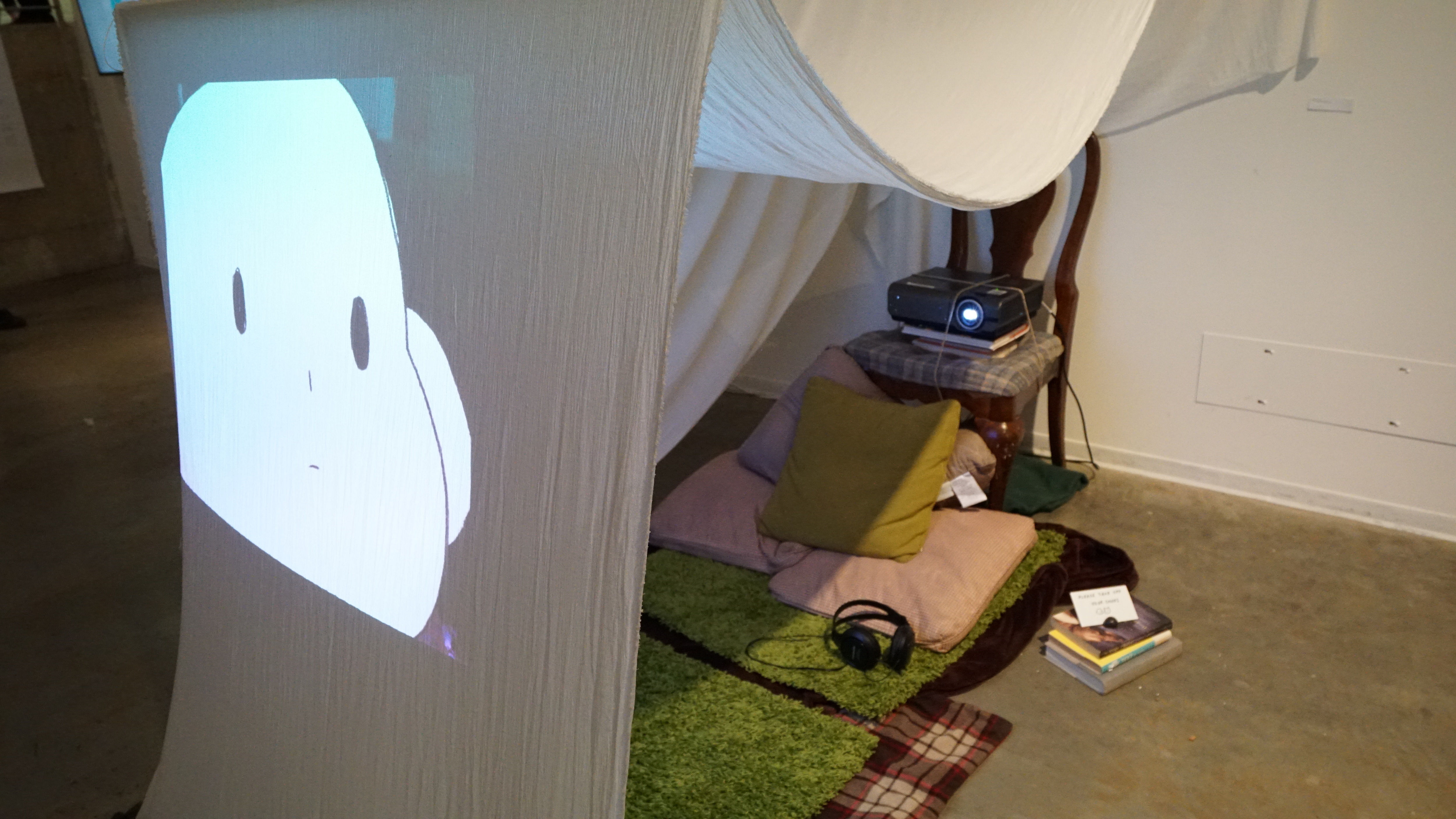i wanted viewers to feel isolated during the experience and come away feeling that the sense of comfort from the blanket fort they are in is fabricated in a way, and is only there to cloud over the feeling of loneliness that the animation gives.